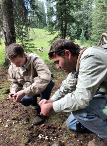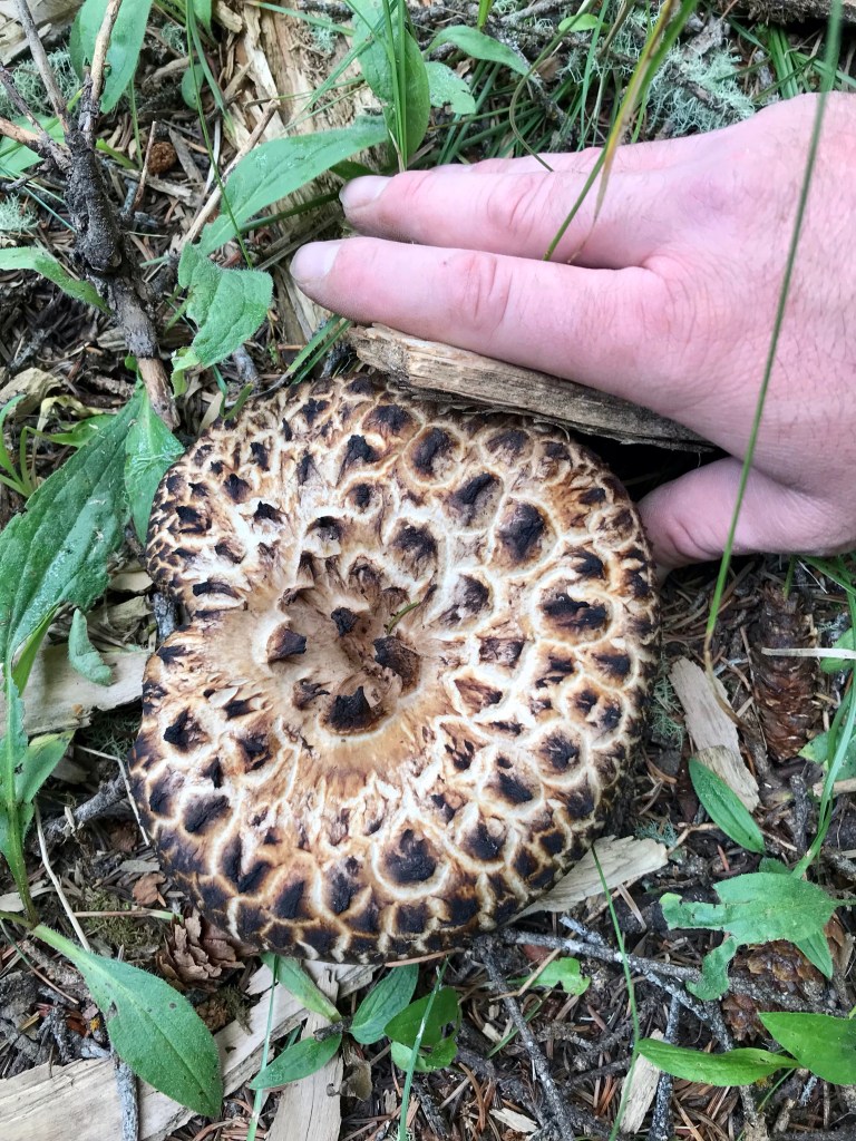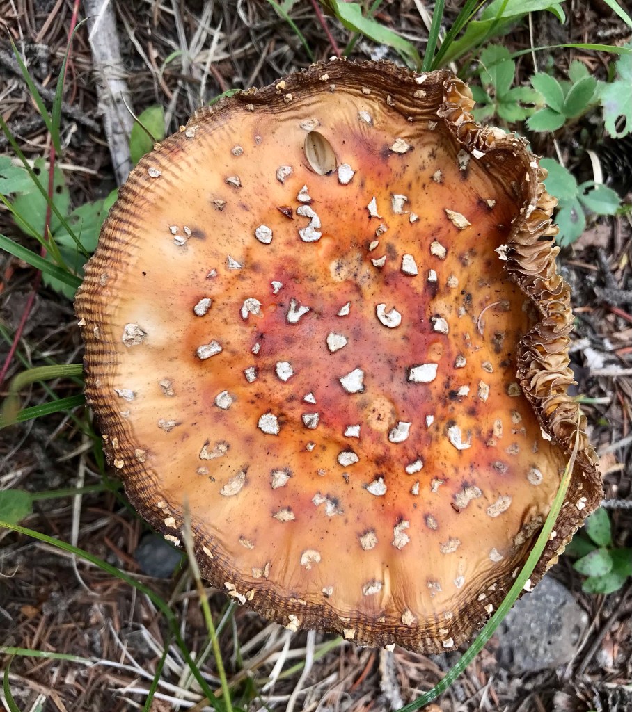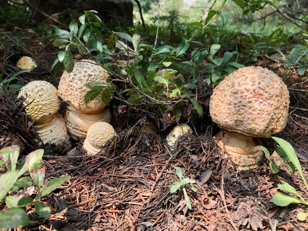 Carrying pocketknives and a mesh bag, wearing our hiking boots and long sleeves to protect against mosquitos, we left the truck and walked into an open grassed area on Grand Mesa, headed for the tall fir trees. Just days earlier Cyrus had hunted mushrooms. He was confident we would collect as many as we wanted. Within minutes we were nearly tripping over (not from) all kinds of fungi.