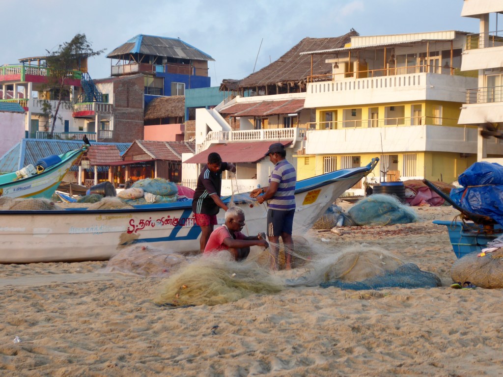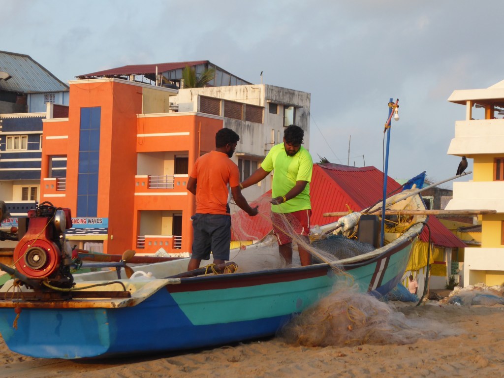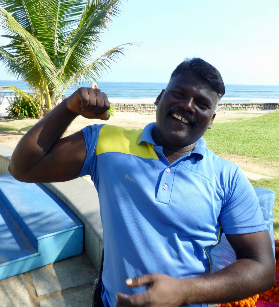 I was able to speak basic Tamil with Ramesh as I headed into the resort to eat at their restaurant. I was attracted to his natural warmth. He explained he was a former fisherman turned lifeguard. His knowledge of the currents and the waves and the ocean weather had helped him rescue over 40 people. He had monstrous biceps; I felt good he was there protecting tourists.