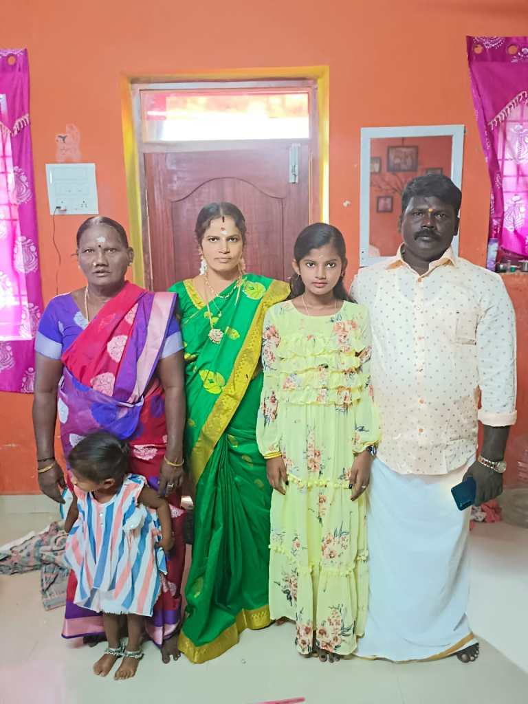 We continued our relationship over the years as I visited Mamallapuram at least five more times. I watched their lives change. Their active pre-schooler grew into a young woman, earning top grades in a local private school. Ramesh kept blowing his whistle at tourists who ventured too far out in the ocean and rescued those caught in the strong riptide. Bhavani continued to maintain the home, doing huge batches of laundry, caring for their daughter, and cleaning and cooking for Ramesh’s mother, brother, and her daughter and Ramesh. She even started taking sewing lessons so she could earn additional money for the family. Every Friday she visited the deity in the local temple important for the fishing community.