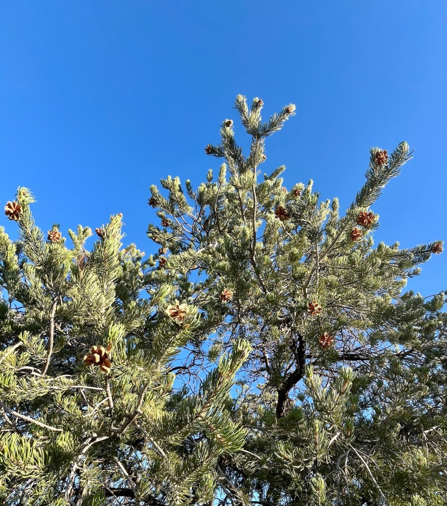 We searched for piñon trees—dead ones to cut and live ones to pick. I’d never collected piñon nuts, instead paying big dollars for the baggies of nuts gathered by Diné families who sold them from the roadside each fall. But today I was the primary picker. We pulled off to the side within feet of a tree laden with cones.